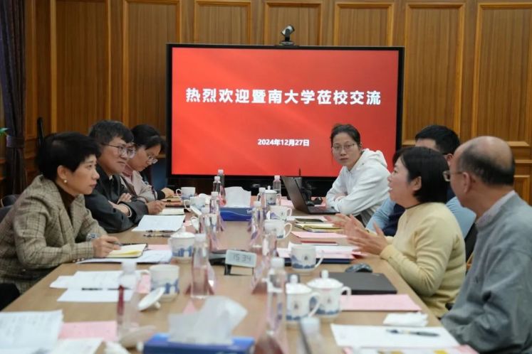 2024年12月26日至27日,暨南大学党委常委、统战部部长梁燕和党委常委、组织部部长李朋军一行赴上海高校开展党外代表人士队伍建设和党外干部培养专题调研,调研旨在进一步优化服务大统战工作格局,广泛汇聚发展力量,借鉴先进工作经验,加强高校统一战线同仁的交流合作。