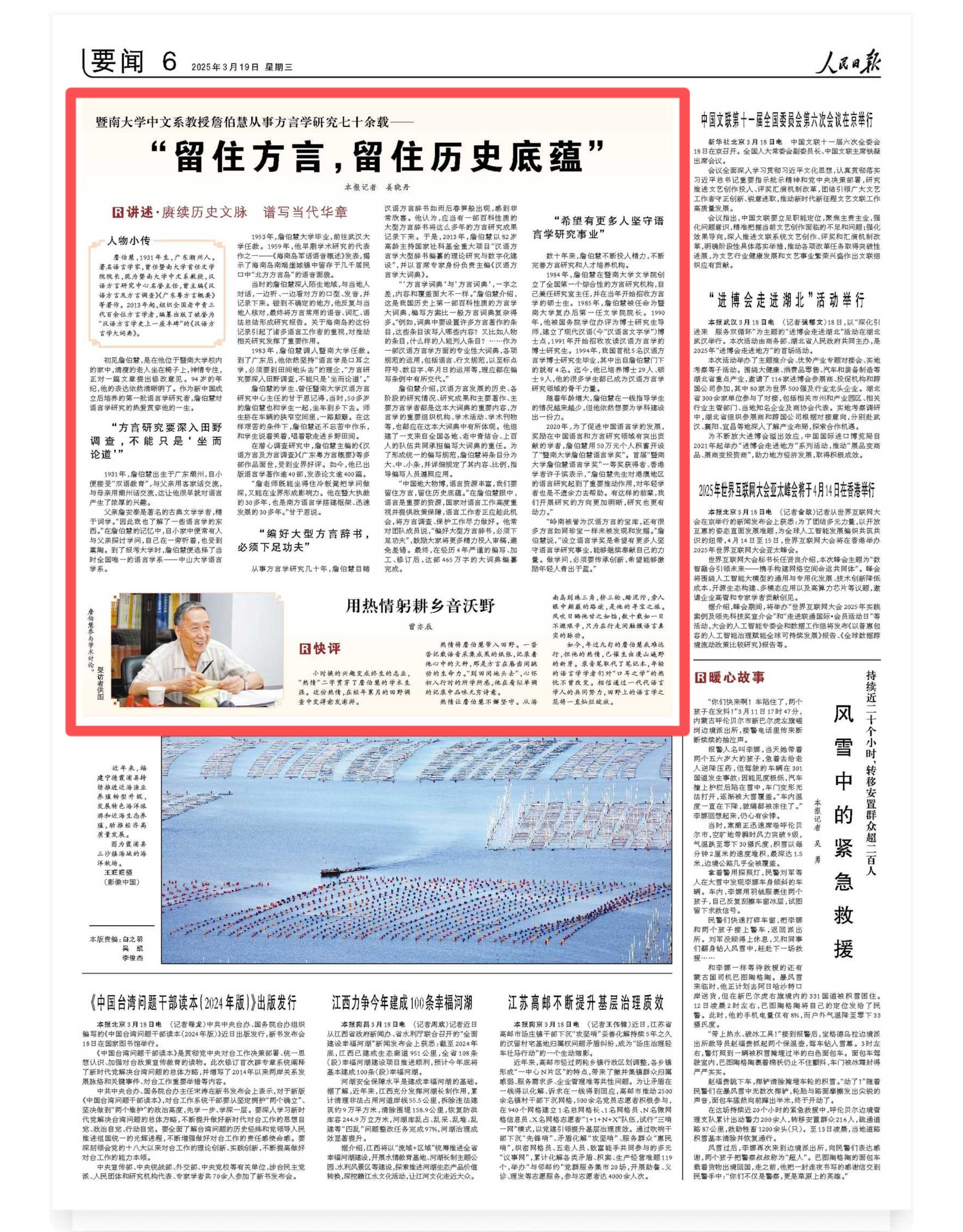 《人民日报》报道民盟暨南大学委员会原主委詹伯慧教授:“留住方...